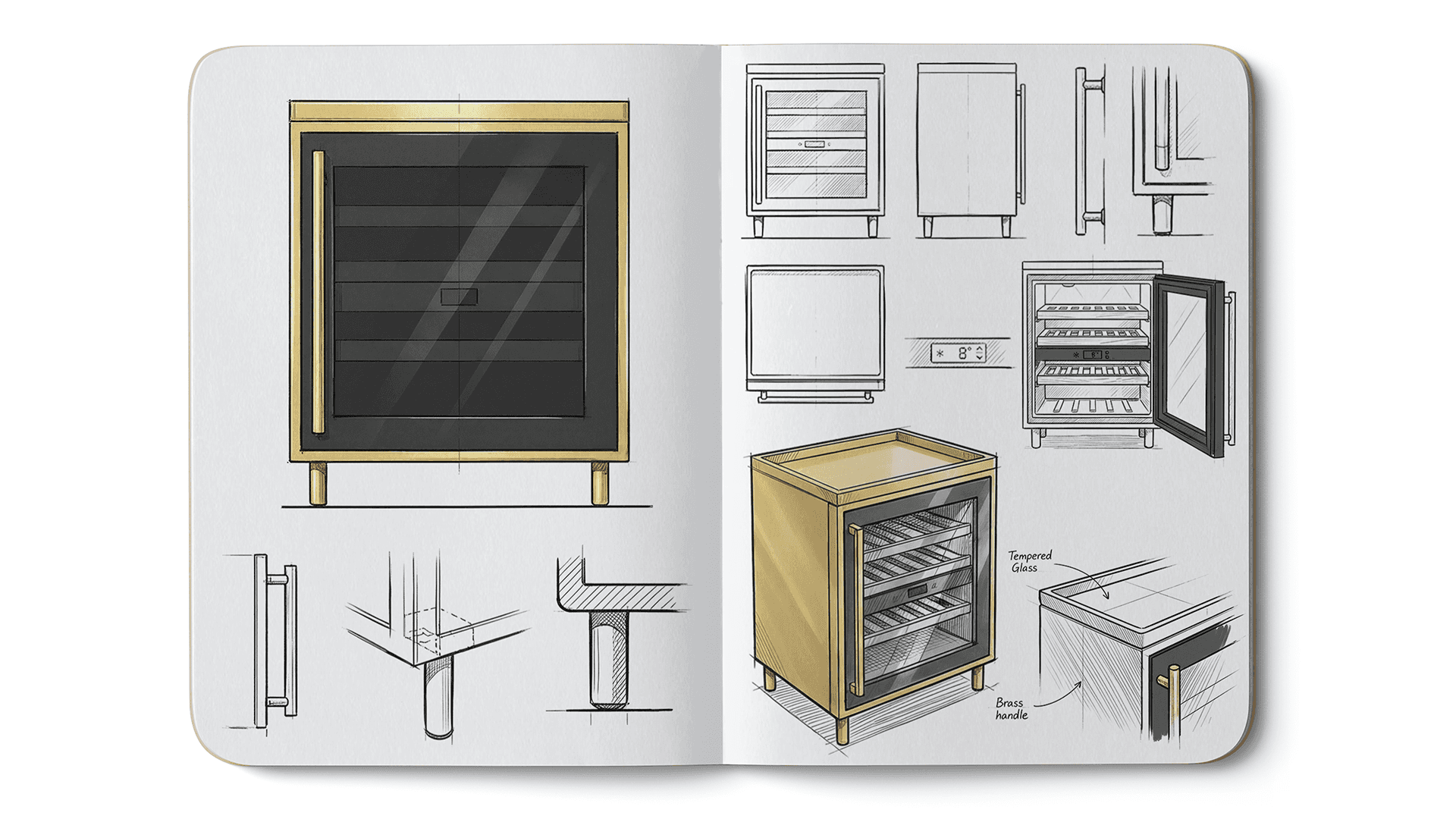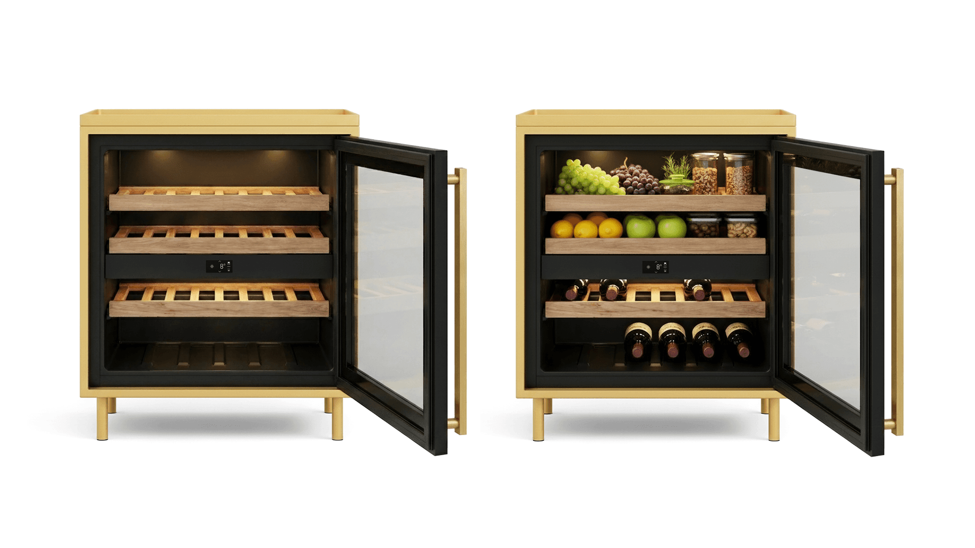 Aris is a premium secondary refrigerator designed for contemporary homes where kitchen and living spaces merge. Positioned as a lifestyle object rather than a hidden appliance, it supports both food preservation and beverage culture, including dedicated wine storage. Elevated on slim legs with a framed glass door and refined materials, Aris blends appliance engineering with furniture aesthetics. Warm interior lighting and flexible shelving transform everyday cooling into a curated hosting experience. Aris explores how white goods can evolve into expressive, emotionally engaging products - visible, personal, and design-driven.